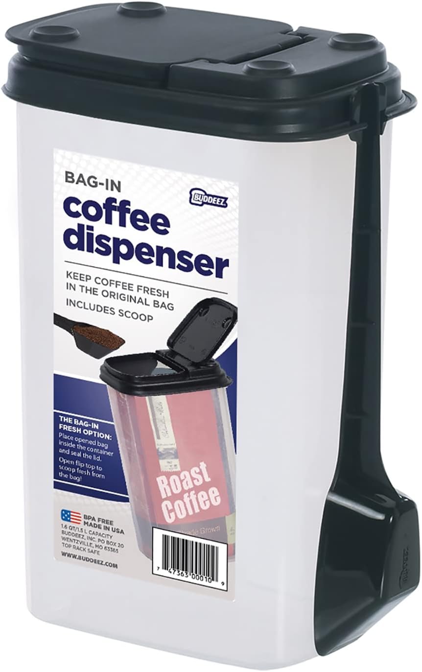 Imagine never having to deal with messy coffee bags or fumbling with cumbersome wire clips again. With the Buddeez Coffee Bean Storage Container, you can say goodbye to those frustrations and enjoy the convenience of a clever pantry organizer that keeps your coffee fresh and flavorful. Designed to hold both whole beans and ground coffee, this container also doubles as a versatile kitchen storage solution for a variety of other items, such as sugar, flour, tea, and more! Equipped with a clear 12oz holder, you can easily identify your favorite brands and flavors. Plus, the container comes with a long-handled, 2-tbsp scoop that conveniently attaches to the holder, making it easy to reach into every corner and savor every last sip of your favorite brew. Upgrade your kitchen storage and organization with the Buddeez Coffee Bean Storage Container and experience the goodness it brings to your daily routine.
